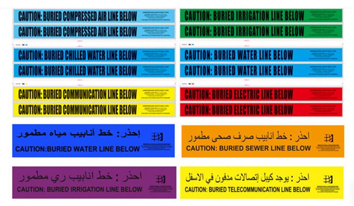 نوار هشدار زیرزمینی قابل تشخیص یک مخلوط خاص لایه دار پالت / فویل / پلی است.این مخلوط شگفت انگیز (با پلی استر) در مقایسه با سایر نوار های هشدار قابل تشخیص از نوع پلی اتیلن، ویژگی های مقاومت استثنایی را فراهم می کندپیام سیاه تیره روی پس زمینه کد رنگ APWA آن طوری درمان شده است که در معرض قلیات، اسید ها و یا هر عنصر مخرب دیگر در زیر زمین تخریب یا محو نشود.